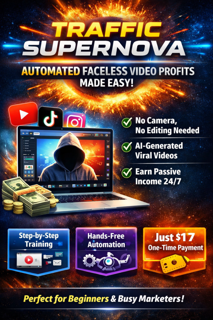 Traffic Supernova offers a simple and automated way to take advantage of the growing faceless video trend. With its beginner-friendly approach, low cost, and time-saving features, it provides a practical entry point for anyone looking to build traffic and online income.